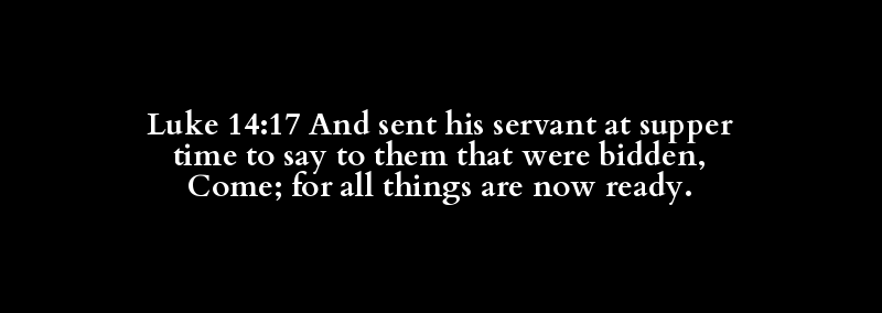 Luke 14:17 And sent his servant at supper time to say to them that were bidden, Come; for all things are now ready.