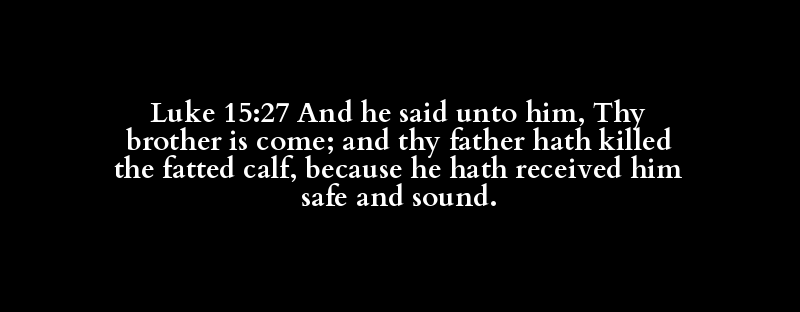 Luke 15:27 And he said unto him, Thy brother is come; and thy father hath killed the fatted calf, because he hath received him safe and sound.