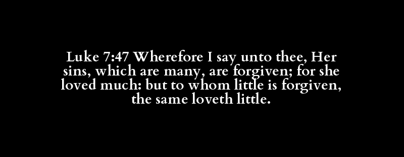 Luke 7:47 Wherefore I say unto thee, Her sins, which are many, are forgiven; for she loved much: but to whom little is forgiven, the same loveth little.