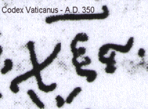manuscript of the Book of Revelation. It contains parts of chapters 9-17. We will consider its readings for numbers in Rev 13:18 and neighboring verses in the next section. Because, as listed above, the majority of the manuscripts (mostly late Byzantine miniscule manuscripts) include the representation of the number six hundred sixty-six by the three letters (chi)(xi)(stigma), the text presented in another modern (but non-standard) edition called not surprisingly THE GREEK NEW TESTAMENT ACCORDING TO THE MAJORITY TEXT, does so also.[20] Note that there is a major disagreement in presuppositions about the value of various manuscripts and manuscript groups between the editors of this edition and those of the standard editions.[21] The so-called Textus Receptus which acted as the standard from the 16th century (the actual term first being used in the 17th) until well into the 19th century when modern critical editions started to displace it, was an evolution of early printed editions of the Greek NT. Its printed text also used the (chi)(xi)(stigma) notation. The main textual basis of this edition was only a handful of fairly late manuscripts, a subset of the majority text. VI. Papyrus P47 in Detail on the Numbers of Rev 13:18 As mentioned above, P47 is the oldest extant manuscript which contains part of the Book of Revelation. However, its method of representing the number six hundred sixty-six (using Greek alphabetic numerals) is not the one selected by the "standard" critical text (which spells out the number words). The textual apparatus of NA26 shows other variations of P47 from the usual text, even in other places in Rev 13:18. Although the use of a modern printed critical edition of the Greek New Testament is within the ability of anyone who can read the Koine Greek, the potential of looking at actual copies (reproductions) of individual manuscripts is slight. Even many theological libraries would not have the printed (published) editions which would contain photographs of the desired manuscript. In this case we are lucky because Kurt and Barbara Aland in their widely available textbook (pun-intended) THE TEXT OF THE NEW TESTAMENT (in both the first and second English editions of 1987 and 1989) include a Plate 23 on page 90 which shows Rev 13:16-14:4 of P47. (Note that the caption of this plate is incorrect in that it attributes P47 to the the second century whereas in other places in the book they give the usual third century date). As mentioned in the description of the Greek alphabetic number system above, the usual way to signal that letters are being used as numerals is by a horizontal line above the letter-numbers. (A horizontal line can also mean something else.) On the ninth line down from the top of this fragment (all line counts will exclude what might be counted as the first line which seems to include only one character at the very top of the plate) we can see the first horizontal line overscore. This is indeed over the three letters (chi)(xi)(stigma) which represents the six hundred sixty-six of Rev 13:18. |