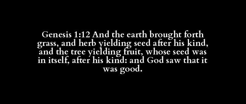 Genesis 1:12 And the earth brought forth grass, and herb yielding seed after his kind, and the tree yielding fruit, whose seed was in itself, after his kind: and God saw that it was good.