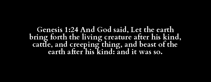 Genesis 1:24 And God said, Let the earth bring forth the living creature after his kind, cattle, and creeping thing, and beast of the earth after his kind: and it was so.