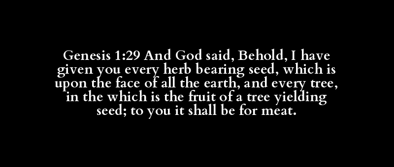 Genesis 1:29 And God said, Behold, I have given you every herb bearing seed, which is upon the face of all the earth, and every tree, in the which is the fruit of a tree yielding seed; to you it shall be for meat.