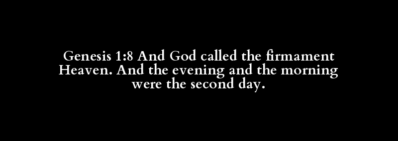 Genesis 1:8 And God called the firmament Heaven. And the evening and the morning were the second day.
