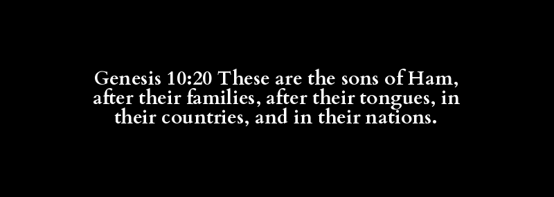 Genesis 10:20 These are the sons of Ham, after their families, after their tongues, in their countries, and in their nations.