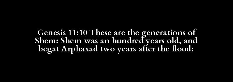 Genesis 11:10 These are the generations of Shem: Shem was an hundred years old, and begat Arphaxad two years after the flood: