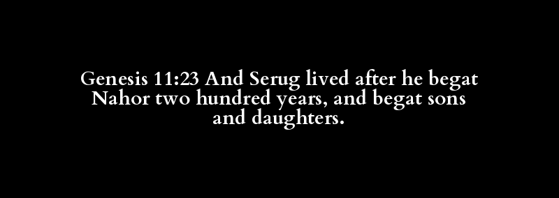 Genesis 11:23 And Serug lived after he begat Nahor two hundred years, and begat sons and daughters.