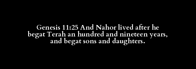 Genesis 11:25 And Nahor lived after he begat Terah an hundred and nineteen years, and begat sons and daughters.