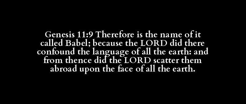 Genesis 11:9 Therefore is the name of it called Babel; because the LORD did there confound the language of all the earth: and from thence did the LORD scatter them abroad upon the face of all the earth.