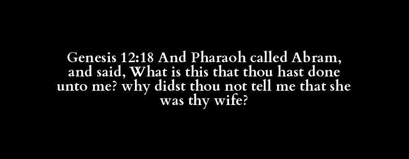 Genesis 12:18 And Pharaoh called Abram, and said, What is this that thou hast done unto me? why didst thou not tell me that she was thy wife?
