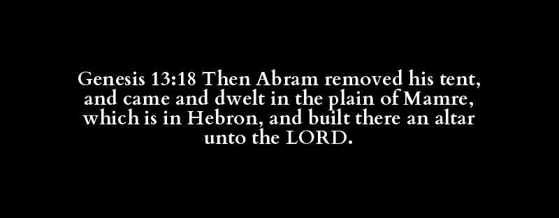 Genesis 13:18 Then Abram removed his tent, and came and dwelt in the plain of Mamre, which is in Hebron, and built there an altar unto the LORD.