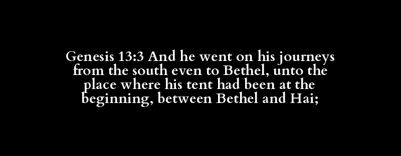 Genesis 13:3 And he went on his journeys from the south even to Bethel, unto the place where his tent had been at the beginning, between Bethel and Hai;