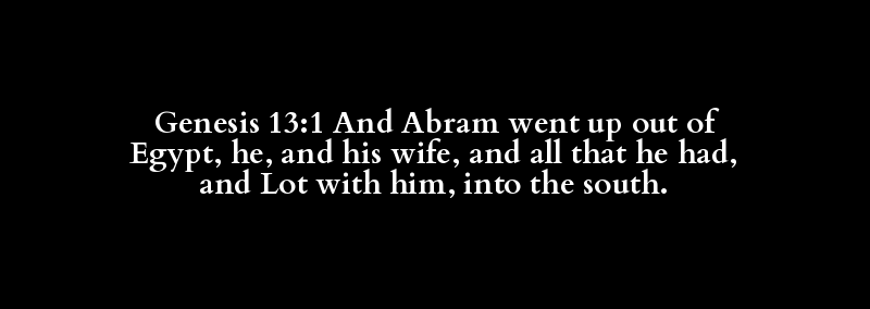 Genesis 13:1 And Abram went up out of Egypt, he, and his wife, and all that he had, and Lot with him, into the south.