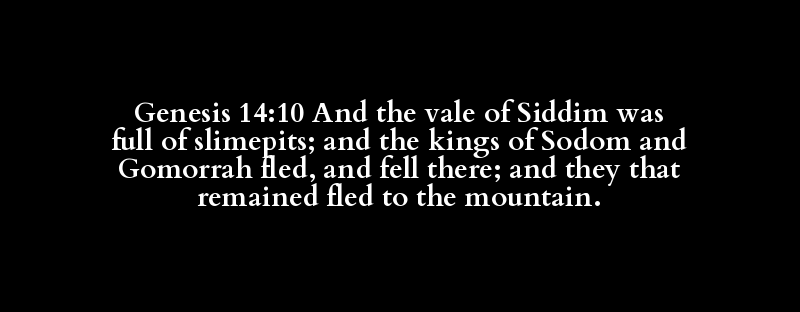 Genesis 14:10 And the vale of Siddim was full of slimepits; and the kings of Sodom and Gomorrah fled, and fell there; and they that remained fled to the mountain.
