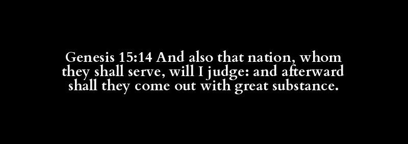 Genesis 15:14 And also that nation, whom they shall serve, will I judge: and afterward shall they come out with great substance.
