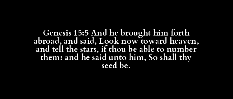 Genesis 15:5 And he brought him forth abroad, and said, Look now toward heaven, and tell the stars, if thou be able to number them: and he said unto him, So shall thy seed be.