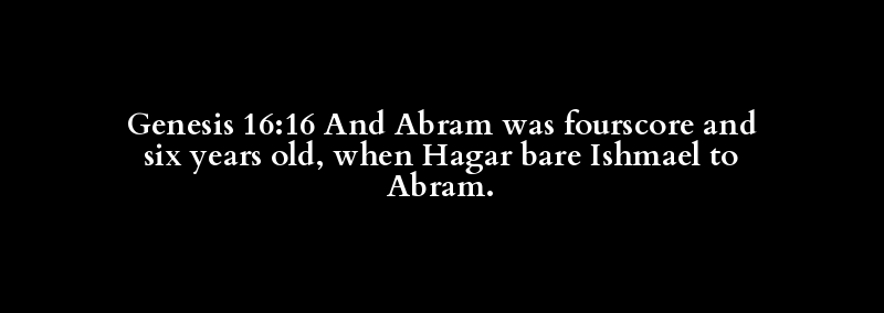 Genesis 16:16 And Abram was fourscore and six years old, when Hagar bare Ishmael to Abram.