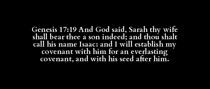 Genesis 17:19 And God said, Sarah thy wife shall bear thee a son indeed; and thou shalt call his name Isaac: and I will establish my covenant with him for an everlasting covenant, and with his seed after him.
