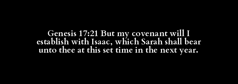 Genesis 17:21 But my covenant will I establish with Isaac, which Sarah shall bear unto thee at this set time in the next year.