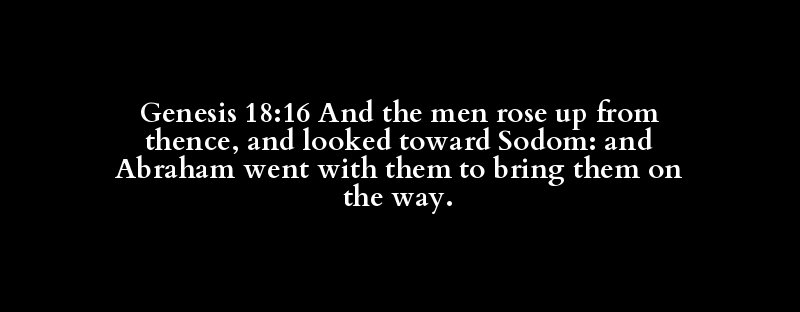 Genesis 18:16 And the men rose up from thence, and looked toward Sodom: and Abraham went with them to bring them on the way.