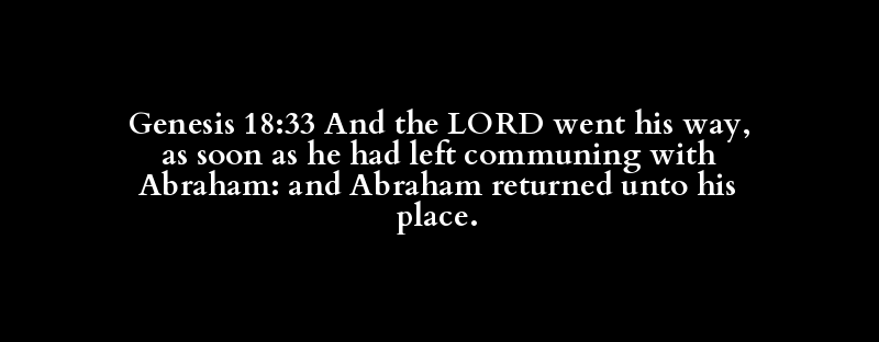 Genesis 18:33 And the LORD went his way, as soon as he had left communing with Abraham: and Abraham returned unto his place.