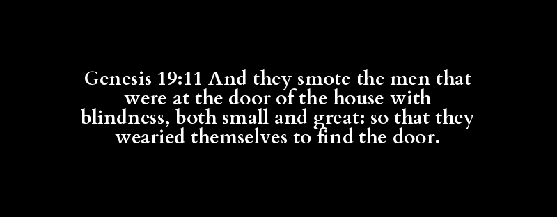 Genesis 19:11 And they smote the men that were at the door of the house with blindness, both small and great: so that they wearied themselves to find the door.