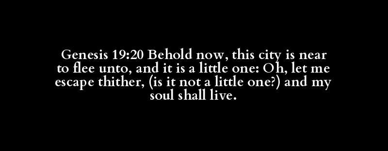 Genesis 19:20 Behold now, this city is near to flee unto, and it is a little one: Oh, let me escape thither, (is it not a little one?) and my soul shall live.