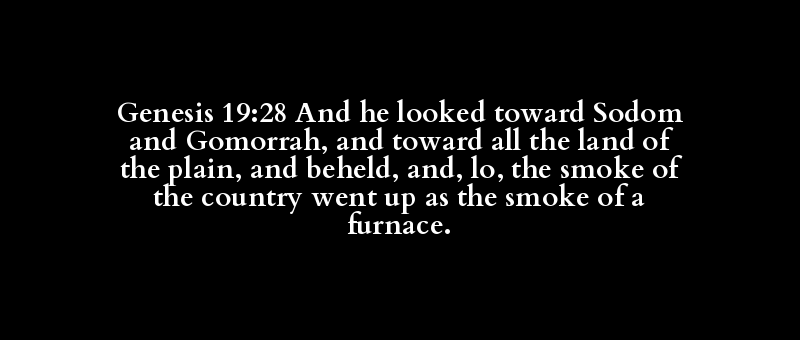 Genesis 19:28 And he looked toward Sodom and Gomorrah, and toward all the land of the plain, and beheld, and, lo, the smoke of the country went up as the smoke of a furnace.