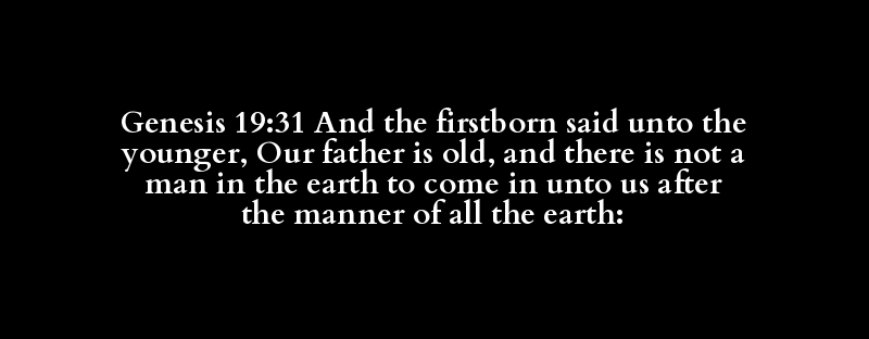 Genesis 19:31 And the firstborn said unto the younger, Our father is old, and there is not a man in the earth to come in unto us after the manner of all the earth: