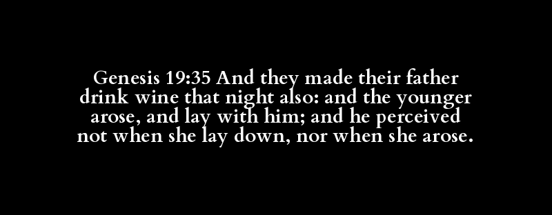 Genesis 19:35 And they made their father drink wine that night also: and the younger arose, and lay with him; and he perceived not when she lay down, nor when she arose.