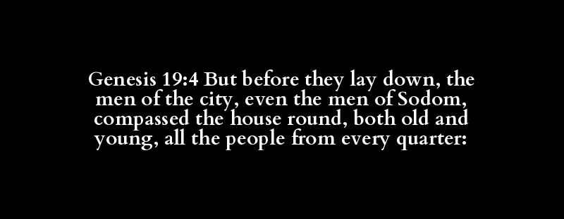 Genesis 19:4 But before they lay down, the men of the city, even the men of Sodom, compassed the house round, both old and young, all the people from every quarter: