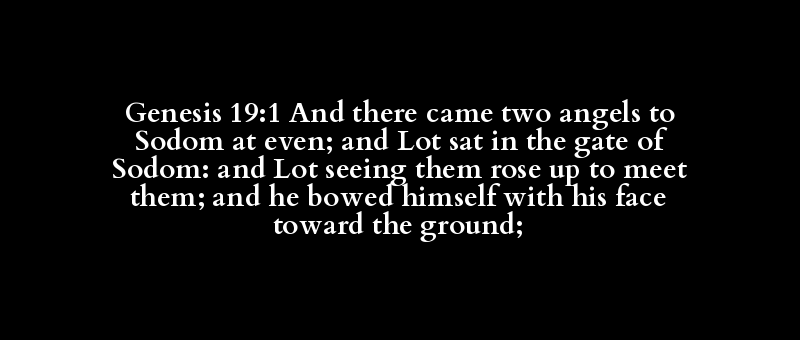 Genesis 19:1 And there came two angels to Sodom at even; and Lot sat in the gate of Sodom: and Lot seeing them rose up to meet them; and he bowed himself with his face toward the ground;