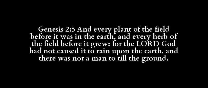 Genesis 2:5 And every plant of the field before it was in the earth, and every herb of the field before it grew: for the LORD God had not caused it to rain upon the earth, and there was not a man to till the ground.