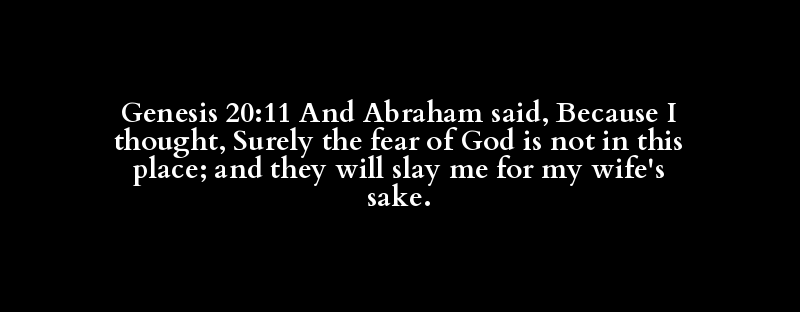 Genesis 20:11 And Abraham said, Because I thought, Surely the fear of God is not in this place; and they will slay me for my wife's sake.