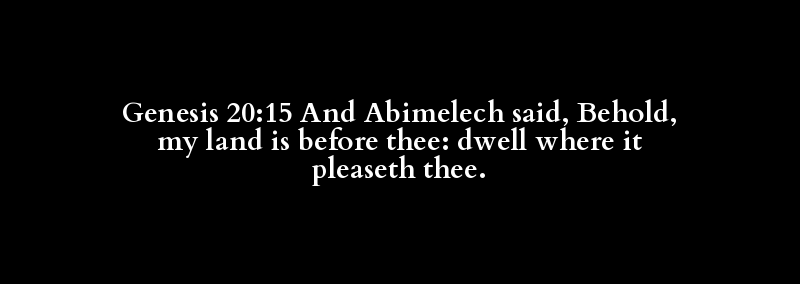 Genesis 20:15 And Abimelech said, Behold, my land is before thee: dwell where it pleaseth thee.