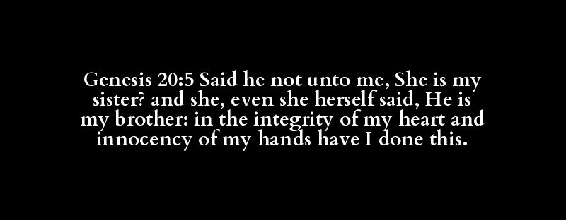 Genesis 20:5 Said he not unto me, She is my sister? and she, even she herself said, He is my brother: in the integrity of my heart and innocency of my hands have I done this.