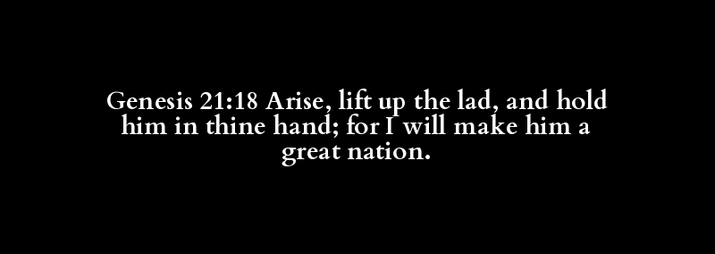Genesis 21:18 Arise, lift up the lad, and hold him in thine hand; for I will make him a great nation.