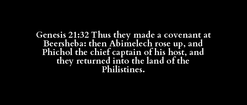 Genesis 21:32 Thus they made a covenant at Beersheba: then Abimelech rose up, and Phichol the chief captain of his host, and they returned into the land of the Philistines.