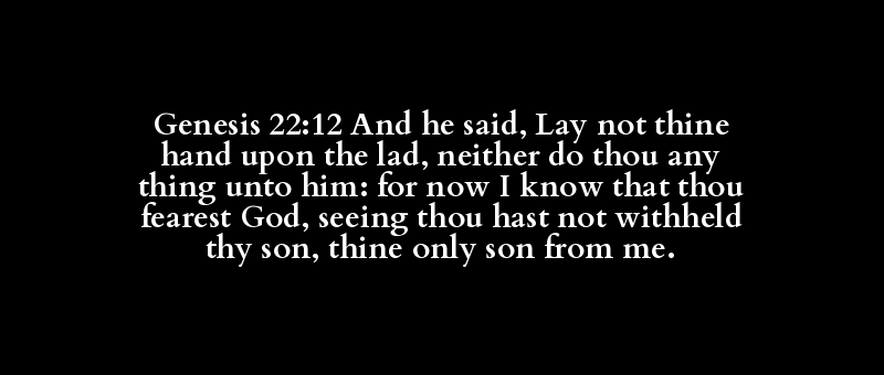 Genesis 22:12 And he said, Lay not thine hand upon the lad, neither do thou any thing unto him: for now I know that thou fearest God, seeing thou hast not withheld thy son, thine only son from me.