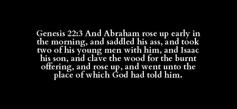 Genesis 22:3 And Abraham rose up early in the morning, and saddled his ass, and took two of his young men with him, and Isaac his son, and clave the wood for the burnt offering, and rose up, and went unto the place of which God had told him.