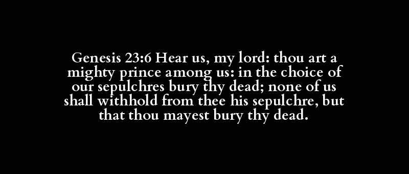 Genesis 23:6 Hear us, my lord: thou art a mighty prince among us: in the choice of our sepulchres bury thy dead; none of us shall withhold from thee his sepulchre, but that thou mayest bury thy dead.