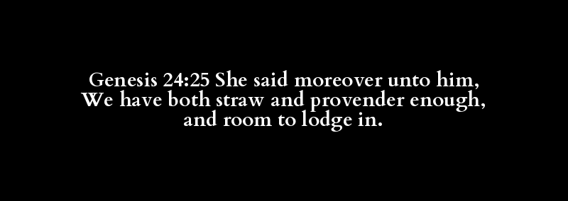 Genesis 24:25 She said moreover unto him, We have both straw and provender enough, and room to lodge in.