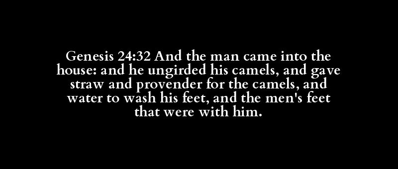 Genesis 24:32 And the man came into the house: and he ungirded his camels, and gave straw and provender for the camels, and water to wash his feet, and the men's feet that were with him.