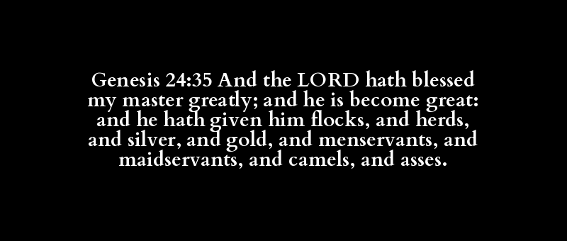 Genesis 24:35 And the LORD hath blessed my master greatly; and he is become great: and he hath given him flocks, and herds, and silver, and gold, and menservants, and maidservants, and camels, and asses.