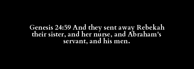 Genesis 24:59 And they sent away Rebekah their sister, and her nurse, and Abraham's servant, and his men.