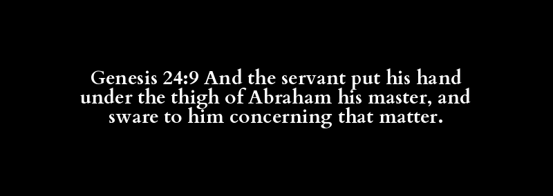 Genesis 24:9 And the servant put his hand under the thigh of Abraham his master, and sware to him concerning that matter.