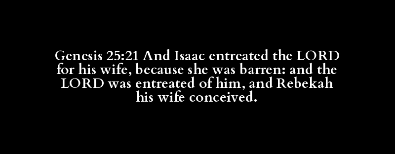 | יִצְחָק | עָתַר | יְהֹוָה | נֹכַח | אִשָּׁה | עָקָר | יְהֹוָה | עָתַר | רִבְקָה | אִשָּׁה | הָרָה |