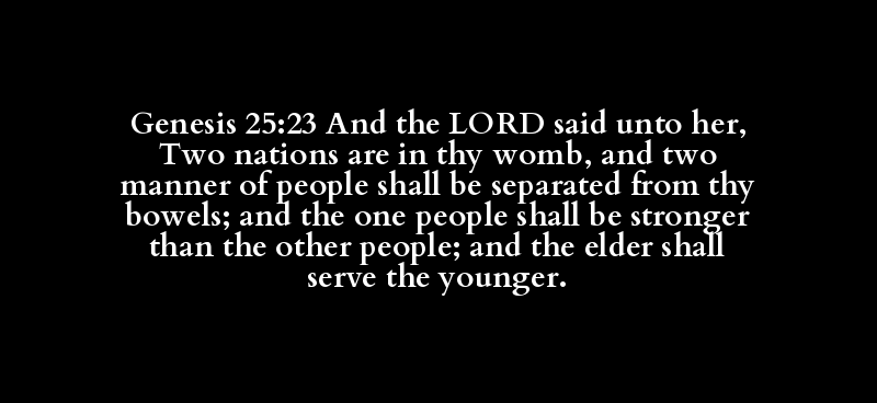Genesis 25:23 And the LORD said unto her, Two nations are in thy womb, and two manner of people shall be separated from thy bowels; and the one people shall be stronger than the other people; and the elder shall serve the younger.
