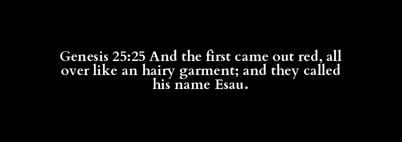 Genesis 25:25 And the first came out red, all over like an hairy garment; and they called his name Esau.