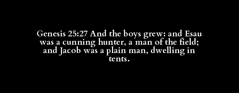 Genesis 25:27 And the boys grew: and Esau was a cunning hunter, a man of the field; and Jacob was a plain man, dwelling in tents.